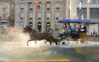 The WAGONETTE is our sports coach. It is open and spacious enough for up to 5 adults or 8 children. We use it for city tours and excursions like trips around the Horw peninsula or along the River Reuss.