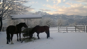 Our two Freiberger mares Zilla and Loretta (mother and daughter) are looking forward to every trip.